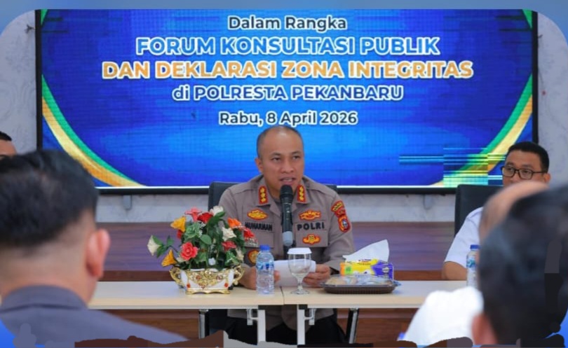 PEKANBARU (KLIKRADAR.COM) — Polresta Pekanbaru menggelar Forum Konsultasi Publik Tahun 2026, sekaligus mendeklarasikan Zona Integritas menuju Wilayah Birokrasi Bersih dan Melayani (WBBM), di Aula Zapin Polresta Pekanbaru, Rabu (8/4/2026).